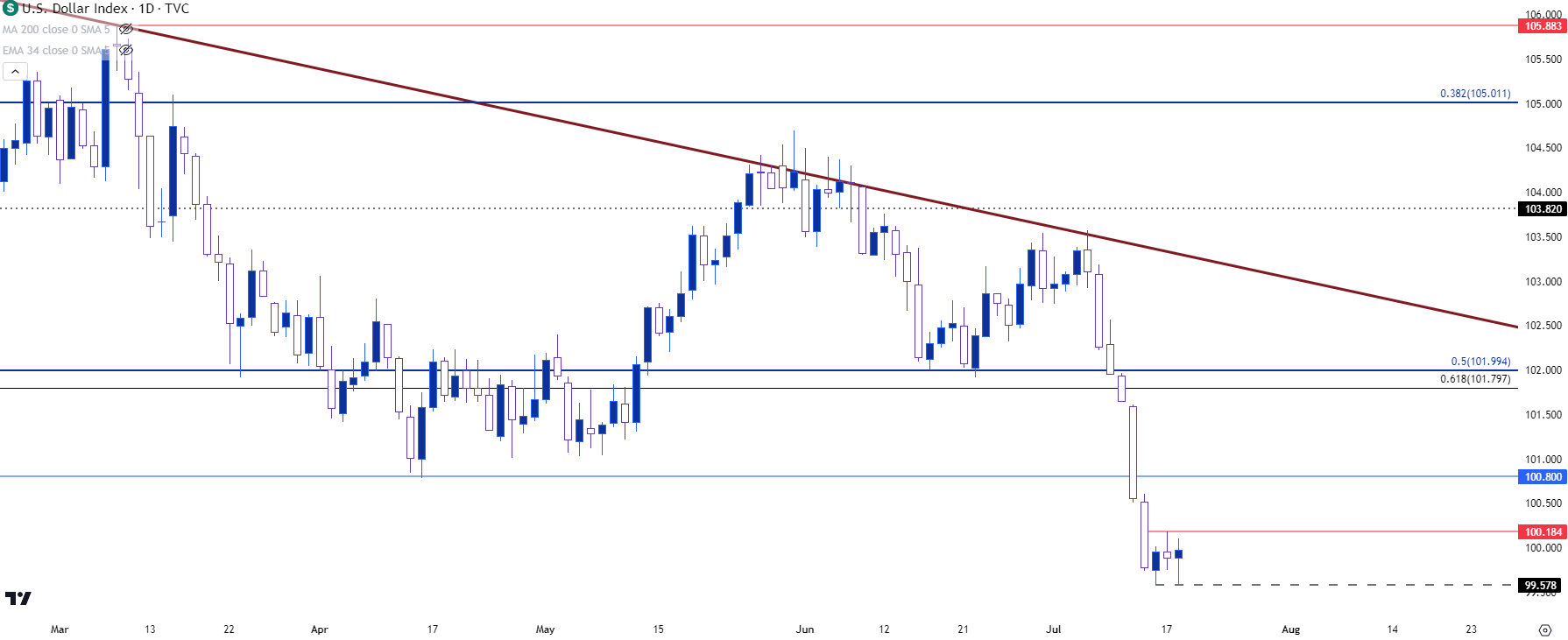 图表由James Stanley绘制,Tradingview上的欧元/美元